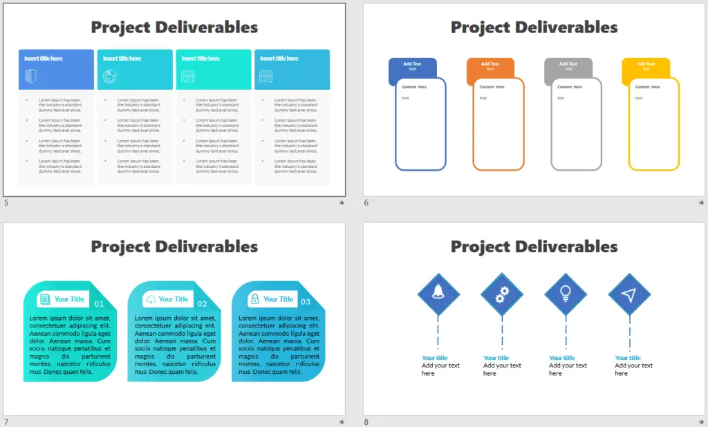 Download free Project Management Infographic Templates – Project Deliverables for your presentations. All templates are customizable, easy-to-edit and free for both personal & commercial use.